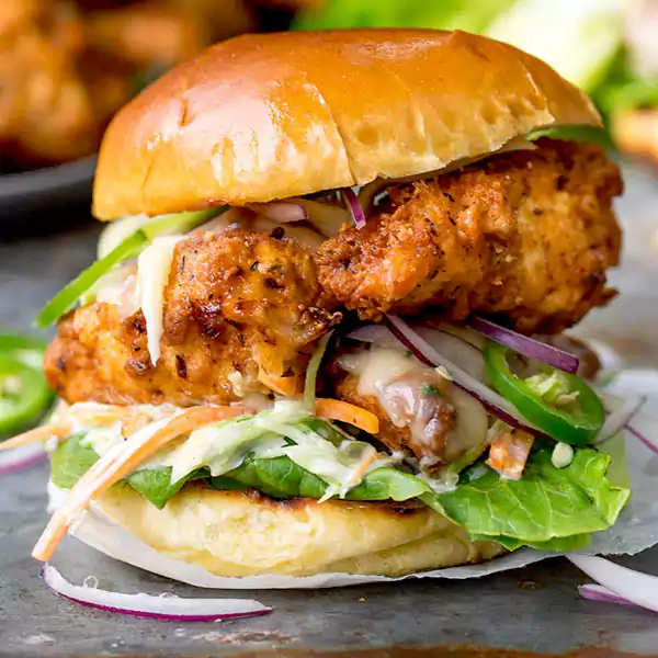 Crispy Tender Chicken On Our Special Bread With Jalapeno, lettuce, Monterey Jack Cheese With Signature Sauce & Fried Onion