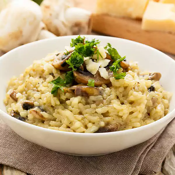 Italian Arborio Rice Cooked In Rich Creamy Mushroom Sauce & Cheese