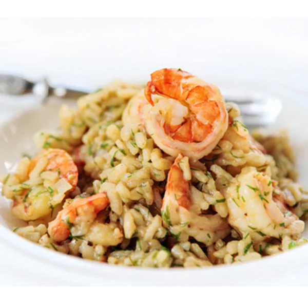 Italian Arborio Rice Cooked In Delicious Pink Sauce With Grilled Shrimps